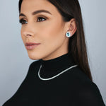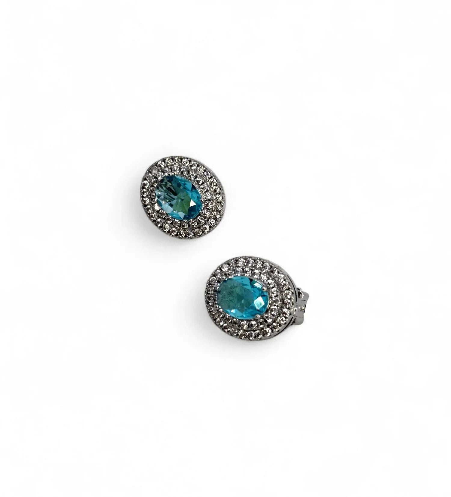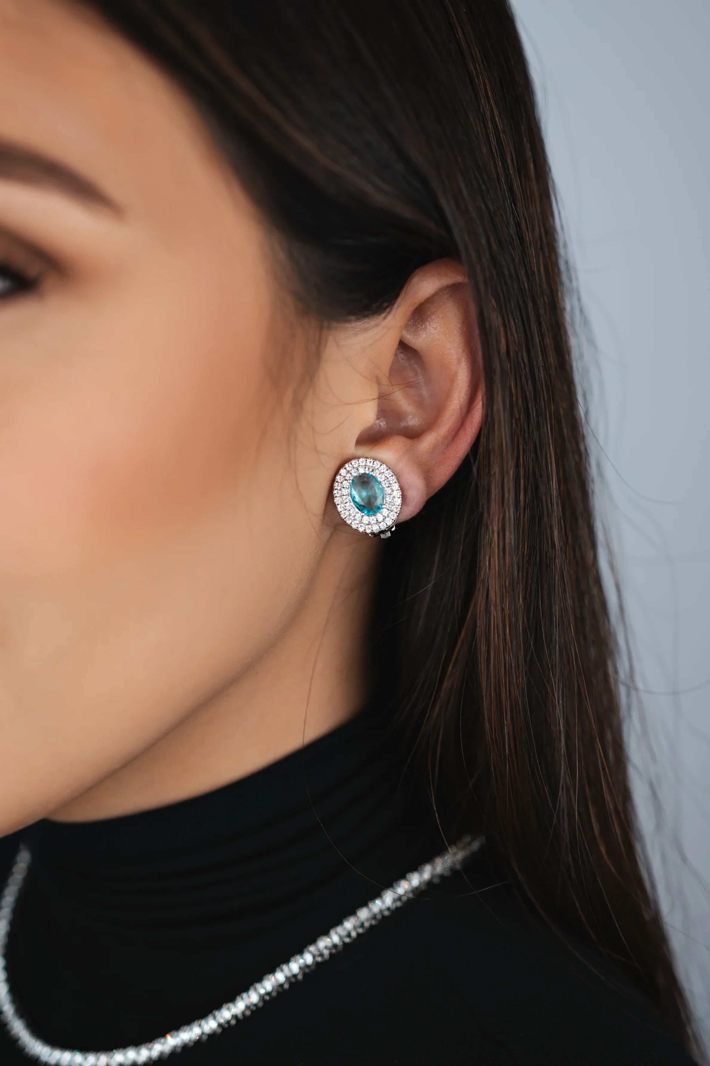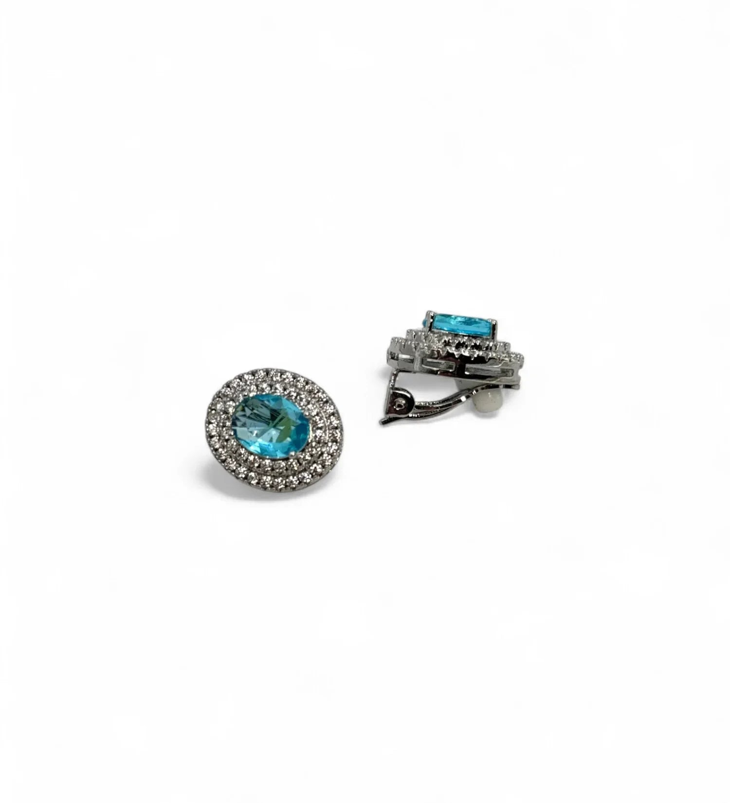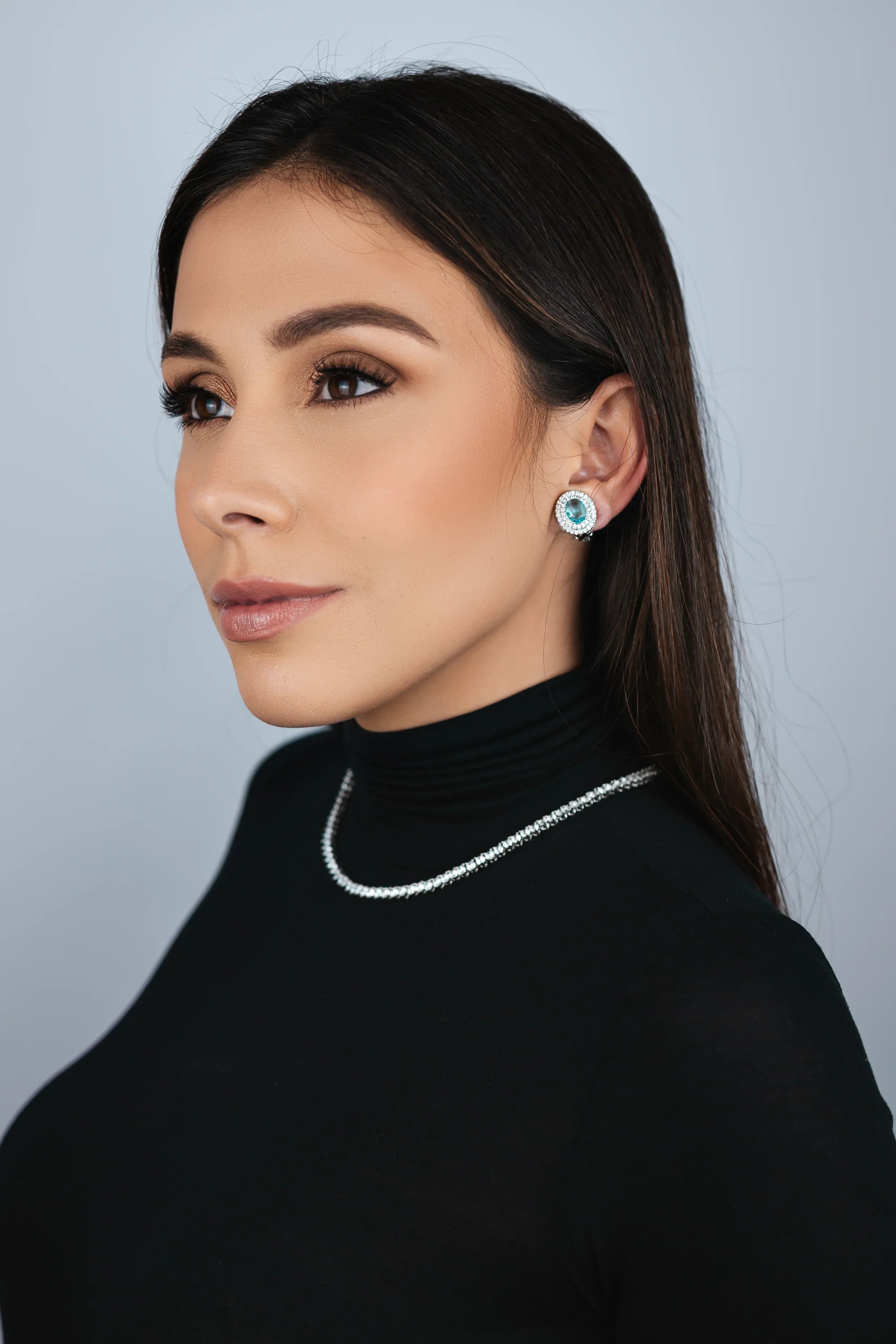 O Brinco Iasmin combina o charme atemporal das zircônias cravejadas com a leveza e sofisticação do tom azul Tiffany. Seu design oval com pedra central vibrante traz frescor e elegância para produções refinadas, sendo a escolha ideal para quem busca um toque de cor em eventos especiais.