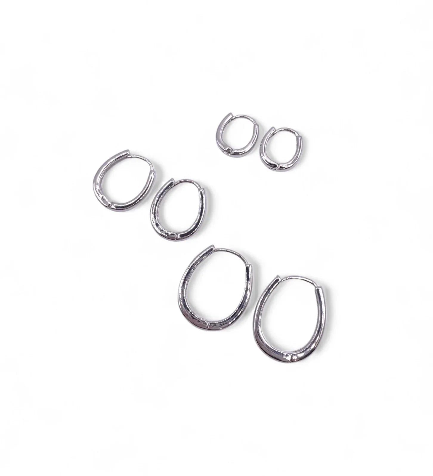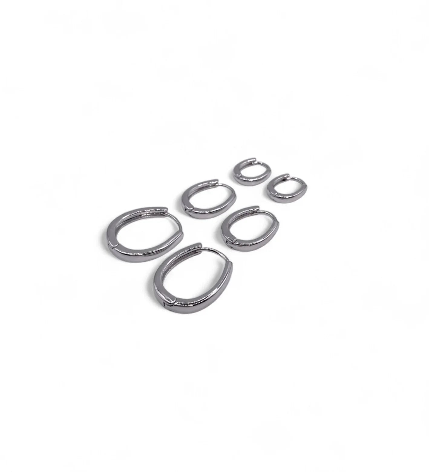 O Trio de Brincos Argolas Ovais Cléo traz leveza e elegância com suas formas suaves e acabamento minimalista. Em tamanhos diferentes, as argolas ovais lisas são perfeitas para composições discretas que valorizam a sofisticação do dia a dia.
