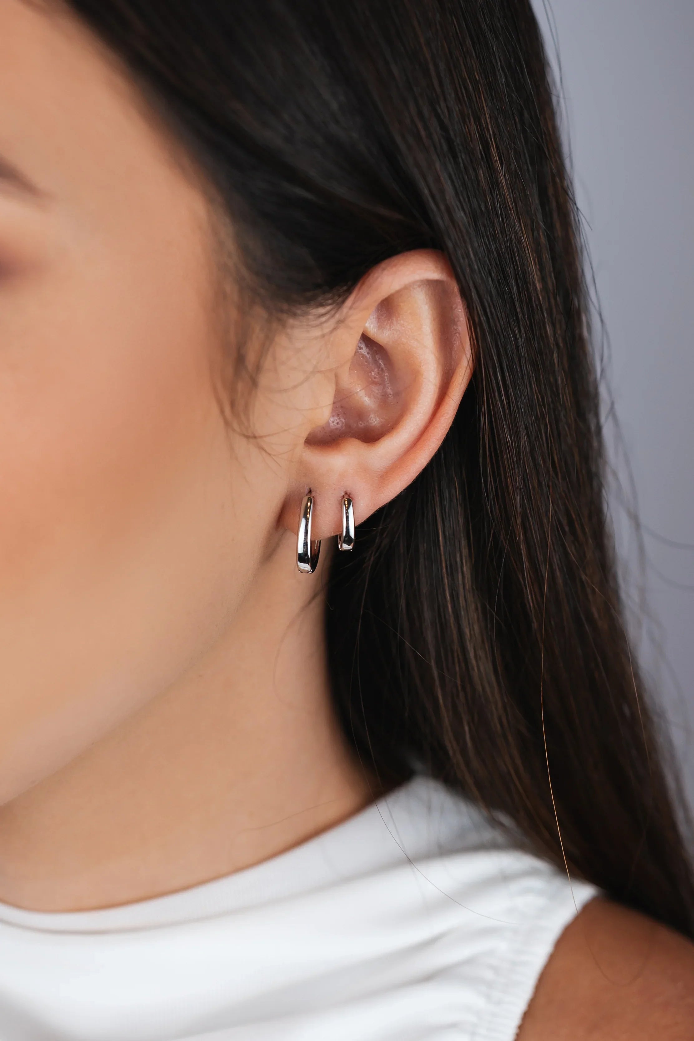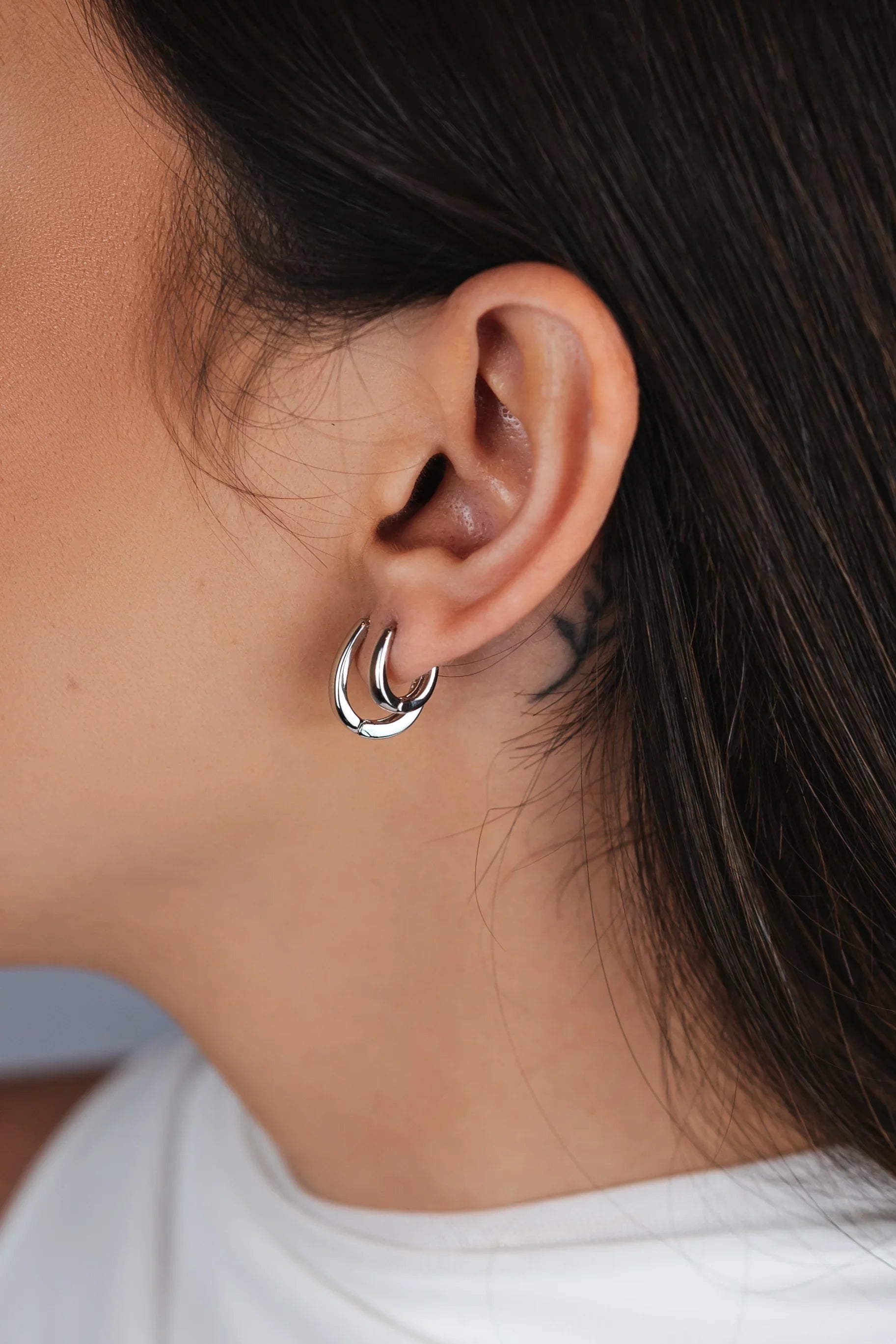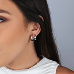 TRIO DE BRINCOS ARGOLAS CLÉO RÓDIO BRANCO