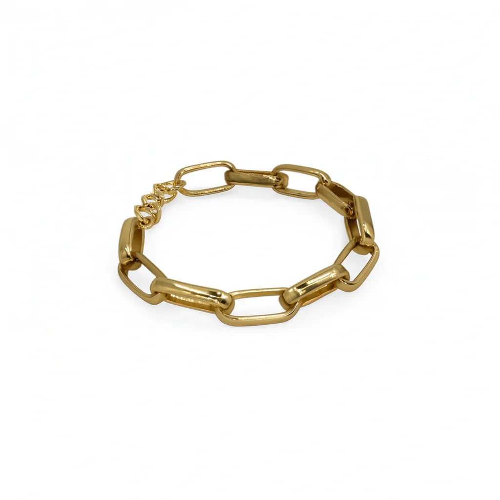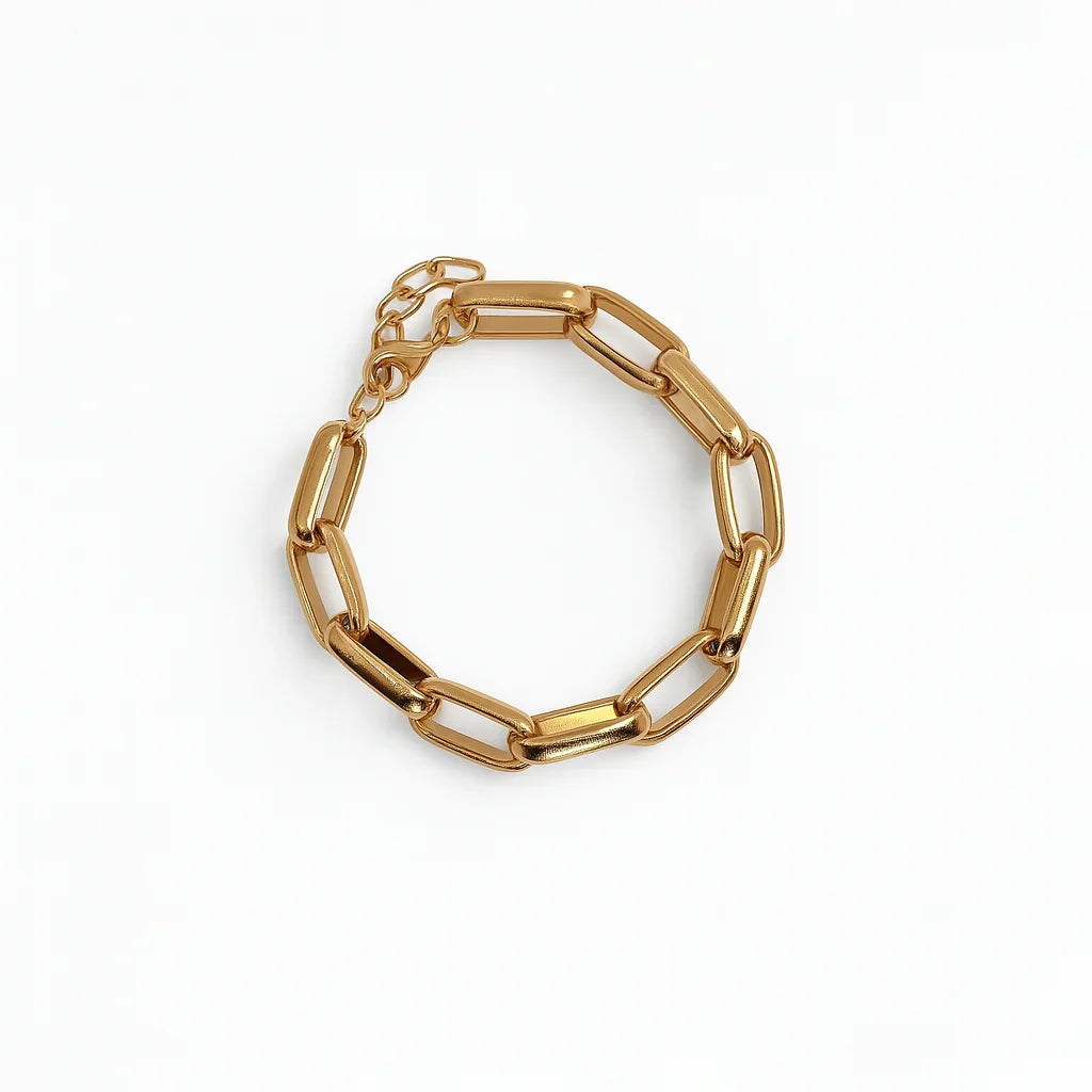 A Pulseira Claudilene é uma celebração da força e beleza das formas naturais. Com elos de corrente em banho dourado e acabamento brilhante, ela carrega um estilo rústico e boho chic que transforma até os looks mais simples com autenticidade e charme orgânico.