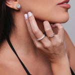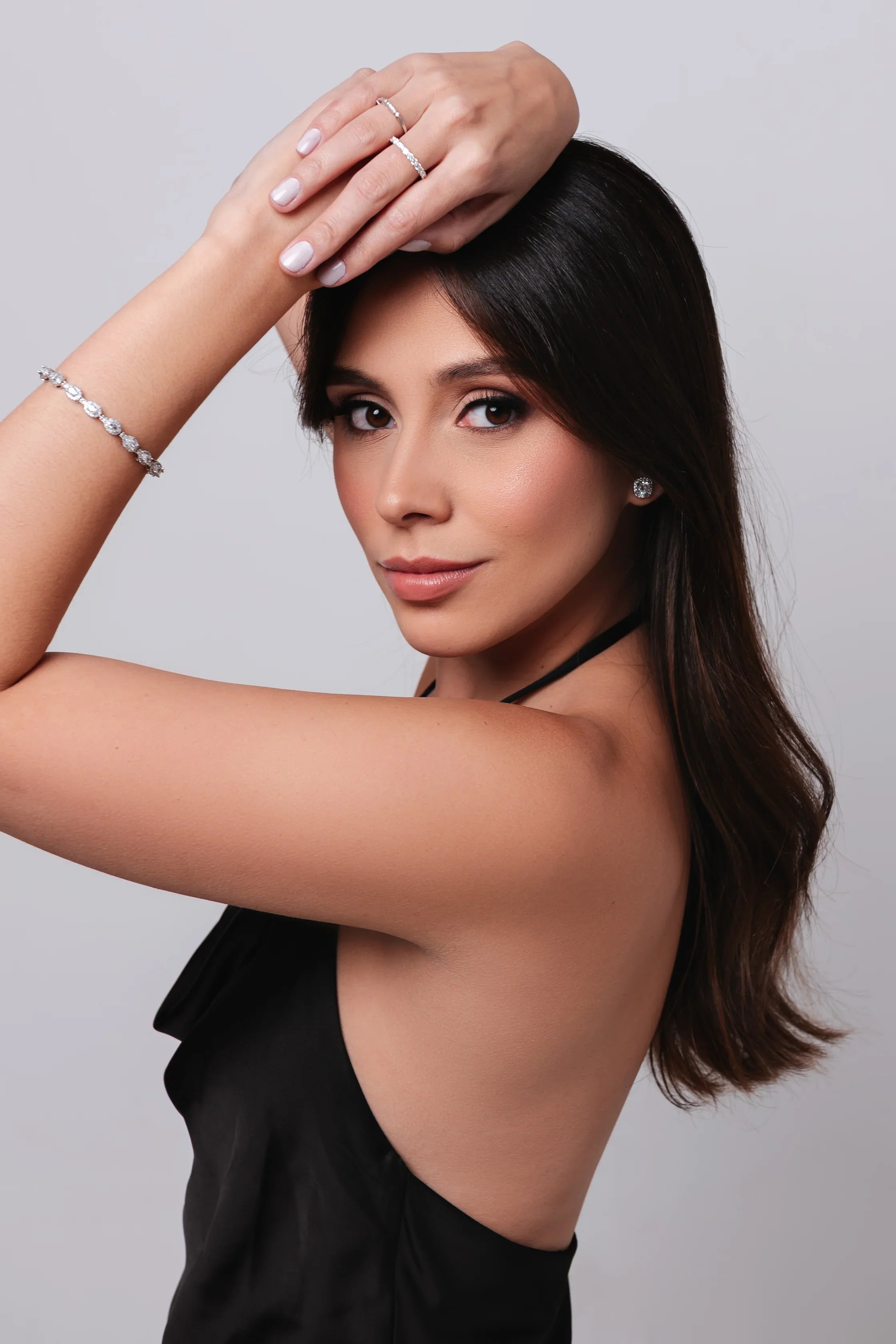 O Anel Melissa é uma joia marcante, perfeita para brilhar em ocasiões especiais. Todo cravejado com zircônias em formato redondo, seu design radiante traduz luxo e glamour com sofisticação. Ideal para quem busca um toque de brilho extra em produções noturnas e festivas.