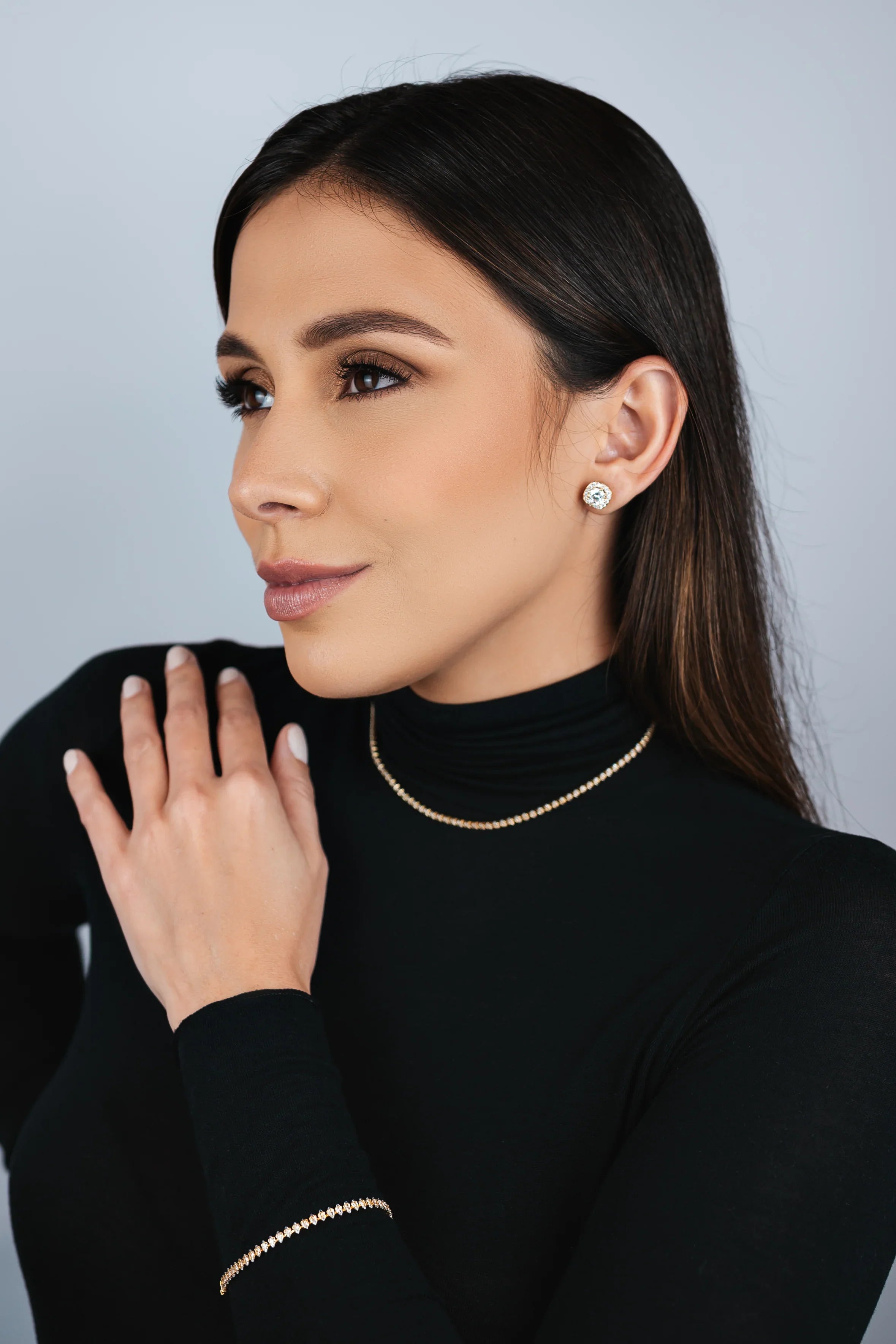 O Brinco Beatriz é a definição de delicadeza e sofisticação em pequenos detalhes. Com estrutura quadrada e cravação de mini zircônias, ele ganha destaque com o cristal central banhado a ouro 18k — um brilho sutil e refinado para ocasiões especiais e produções elegantes.