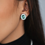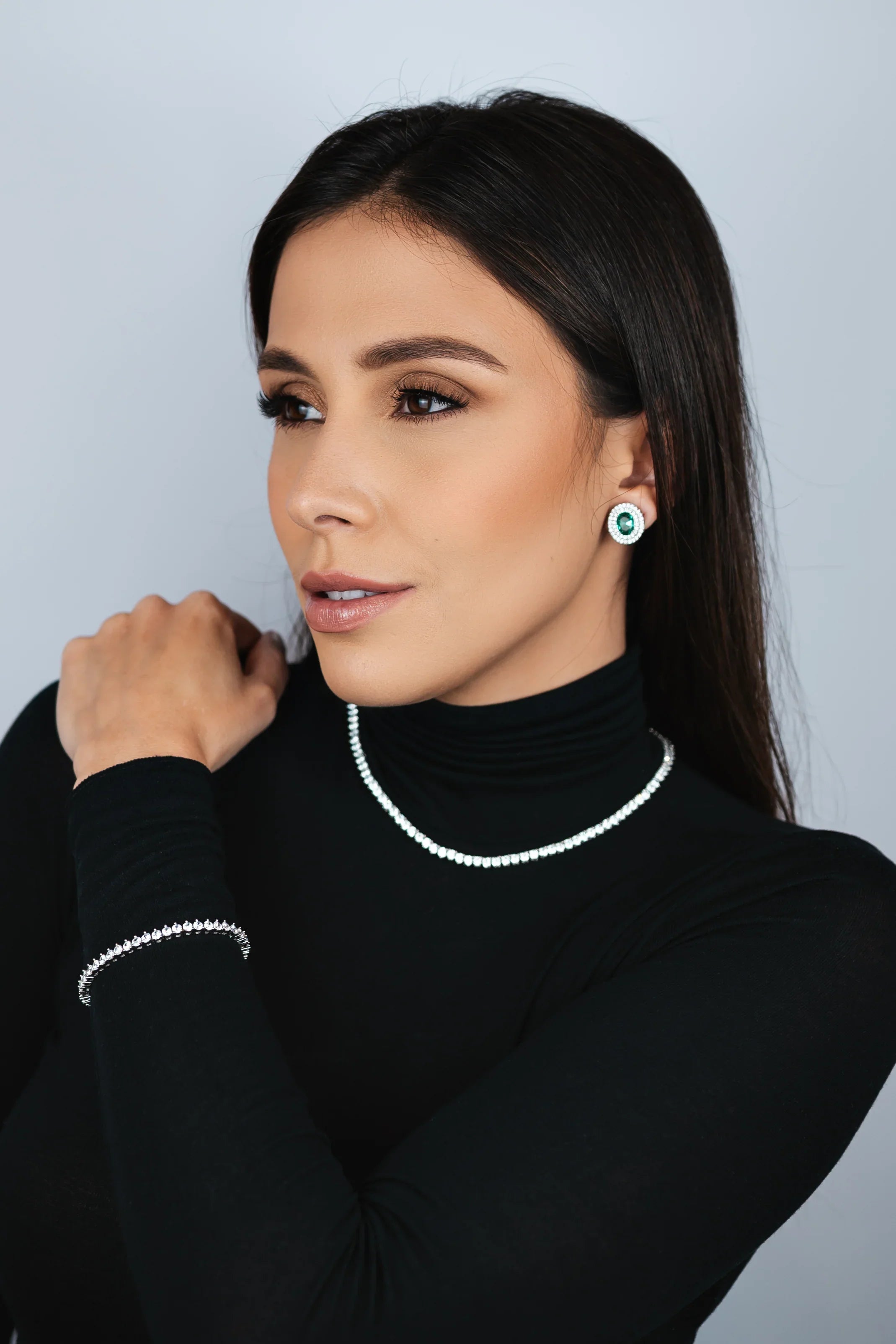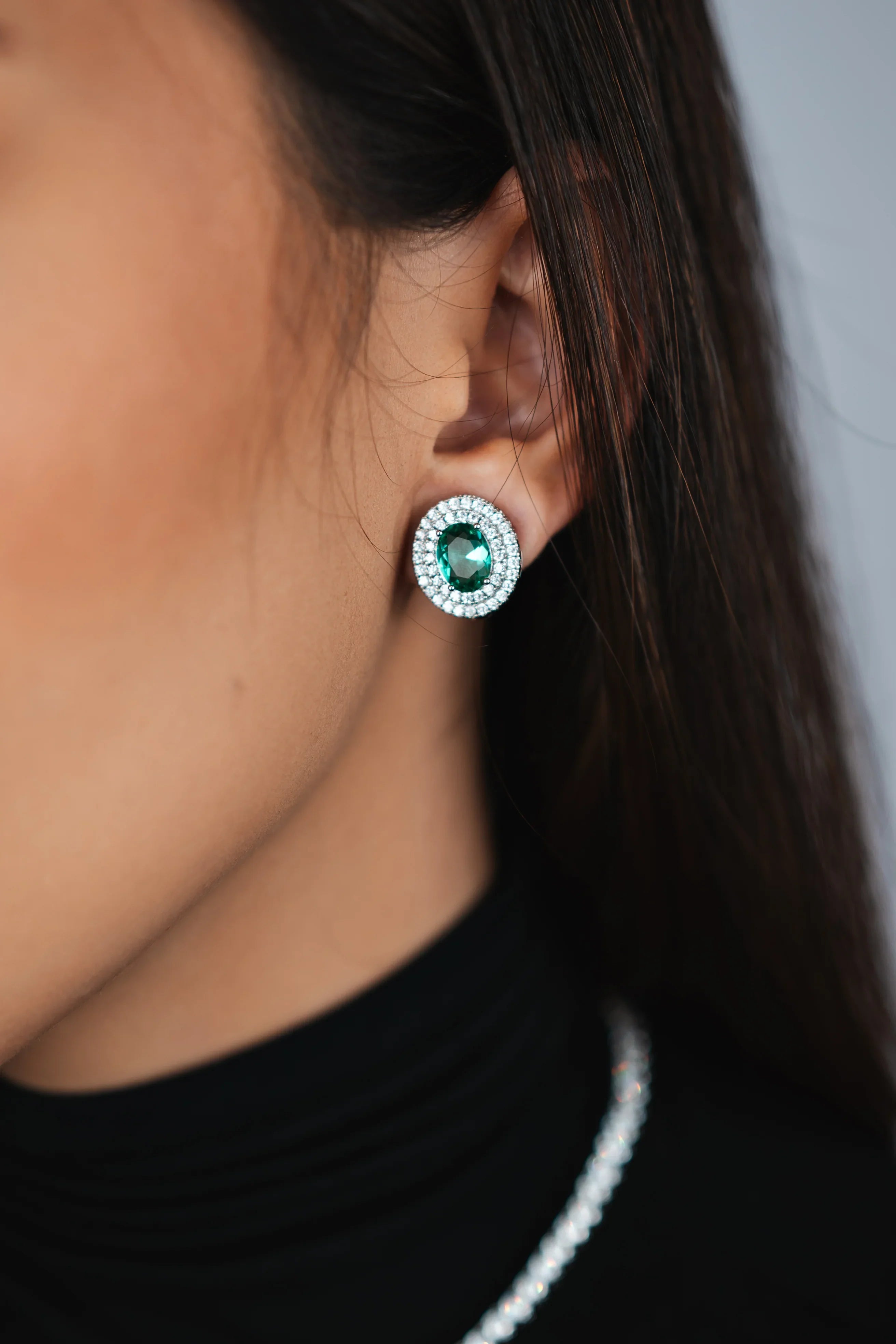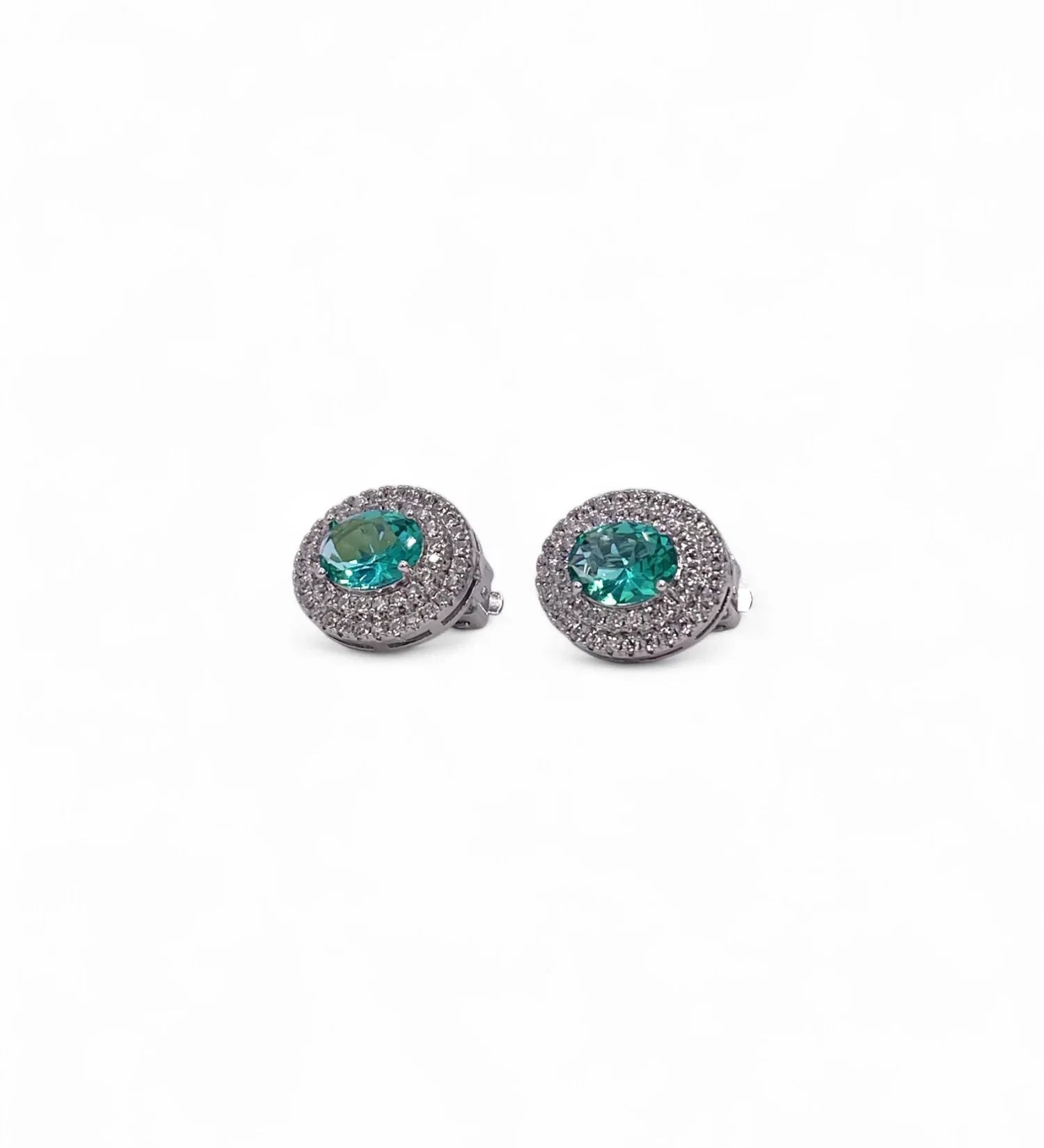 O Brinco Claúdia traz o charme das pedras em tom verde turmalina, combinando luxo e sofisticação em uma peça marcante. Com design oval e cristal central envolvido por zircônias cravejadas, é uma escolha refinada para quem deseja brilhar com elegância.